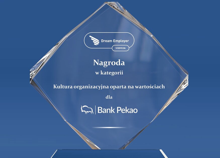 Bank Pekao S.A. został laureatem V edycji konkursu Dream Employer w kategorii „Kultura organizacyjna oparta na wartościach”. Nagroda stanowi potwierdzenie konsekwentnie realizowanej strategii budowania środowiska pracy opartego na autentycznym dialogu, partnerskich relacjach i codziennym wzmacnianiu wartości.