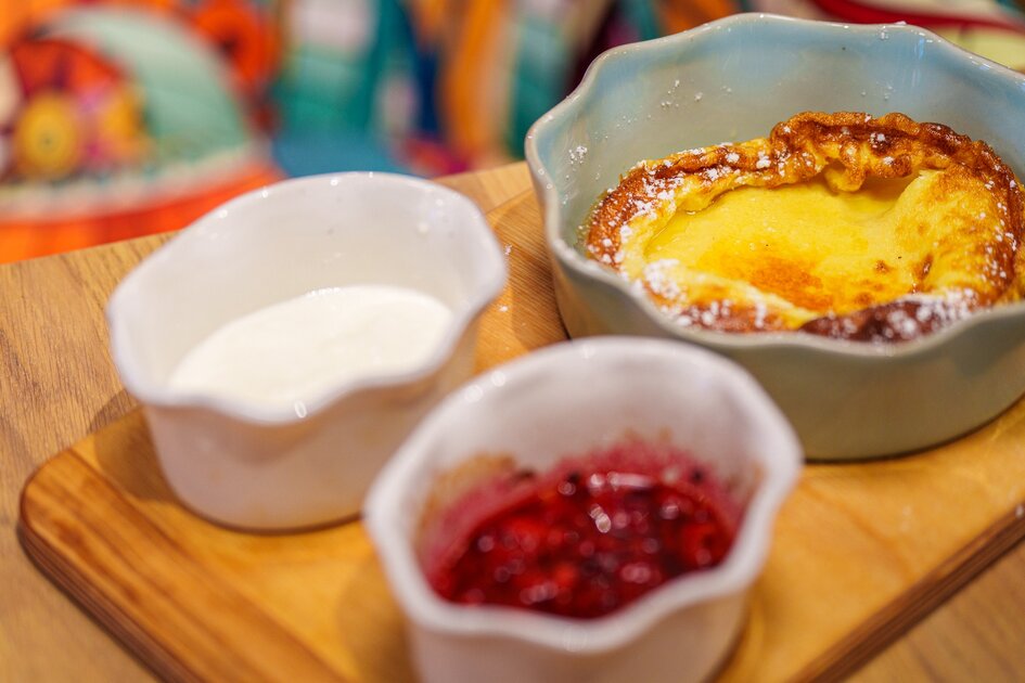 Na szczególną uwagę zasługują flagowe pozycje w menu, które budują unikalny charakter miejsca. Wśród nich znajduje się dutch baby – serwowany zarówno na słodko z zapiekanymi owocami, jak i w wersji wytrawnej z serami. Z kolei reinterpretacją lokalnych tradycji kulinarnych jest kaszanka z Masarni Krzyś, której Fuzja Café nadaje nowoczesny, autorski twist.