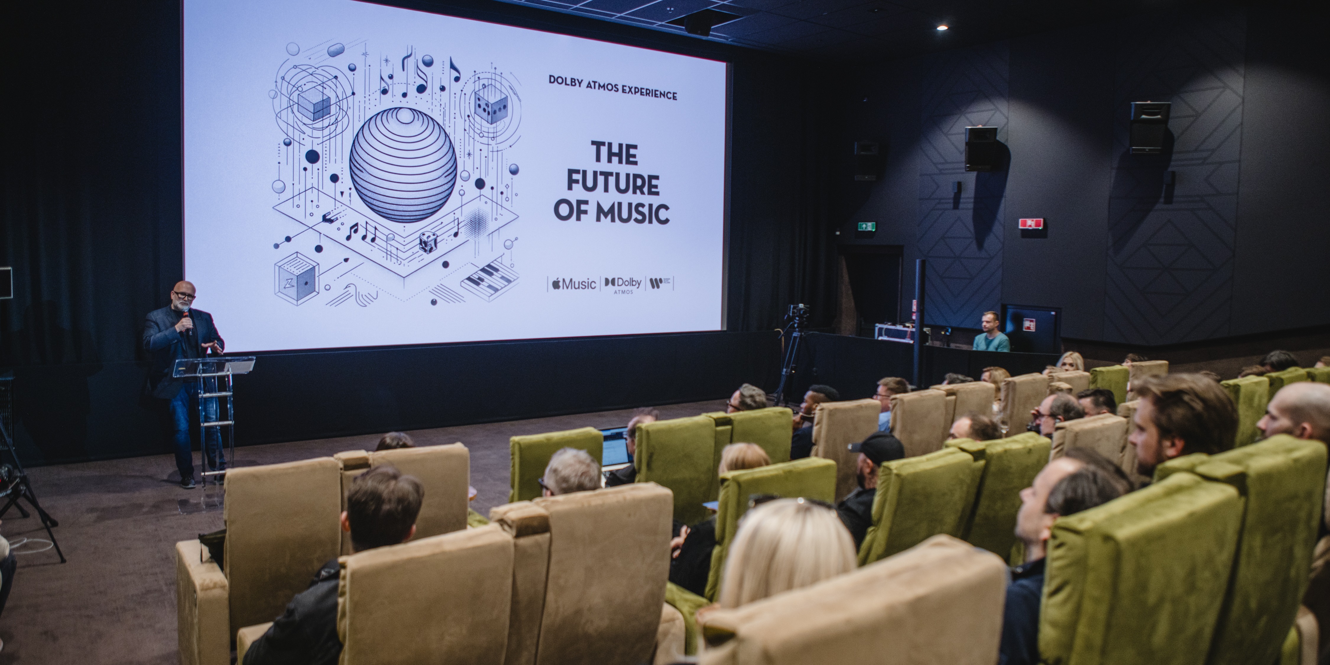 W sali kinowej w KinoGram (wyposażonej w system nagłośnienia Dolby Atmos) uczestnicy mieli również możliwość doświadczenia muzyki w jakości Dolby Atmos na wysokiej klasy sprzęcie dostarczonym przez firmę Apple. Spotkanie było też okazją do wymieniania doświadczeń, zadawania specjalistycznych pytań czy networkingu.